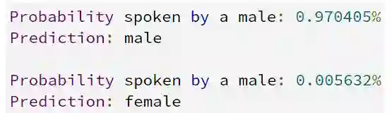 现在,y_pred 包含了预测结果,其概率表示的是该语音来自男性的概率。即如果超过 0.5(或 50%),我们认为该声音是男性,否则是女性。