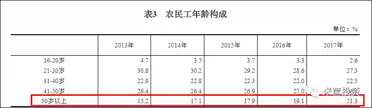 农民工的平均年龄已由2010年的35.5岁显著上升至2017年的39.7岁。另一方面,50岁以上农民工所占比例正越来越大,2017年的占比已扩大到21%,比上年增加了711万人。