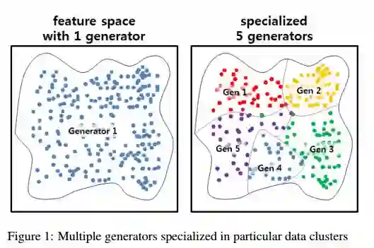 摘要:Recently, generative adversarial networks (GANs) have shown promising performance in generating realistic images. However, they often struggle in learning complex underlying modalities in a given dataset, resulting in poor-quality generated images. To mitigate this problem, we present a novel approach called mixture of experts GAN (MEGAN), an ensemble approach of multiple generator networks. Each generator network in MEGAN specializes in generating images with a particular subset of modalities, e.g., an image class. Instead of incorporating a separate step of handcrafted clustering of multiple modalities, our proposed model is trained through an end-to-end learning of multiple generators via gating networks, which is responsible for choosing the appropriate generator network for a given condition. We adopt the categorical reparameterization trick for a categorical decision to be made in selecting a generator while maintaining the flow of the gradients. We demonstrate that individual generators learn different and salient subparts of the data and achieve a multiscale structural similarity (MS-SSIM) score of 0.2470 for CelebA and a competitive unsupervised inception score of 8.33 in CIFAR-10.