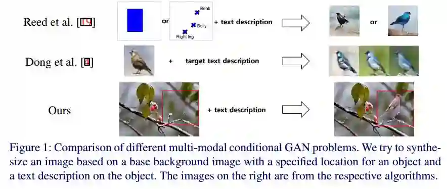摘要:In this paper, we introduce a new method for generating an object image from text attributes on a desired location, when the base image is given. One step further to the existing studies on text-to-image generation mainly focusing on the object's appearance, the proposed method aims to generate an object image preserving the given background information, which is the first attempt in this field. To tackle the problem, we propose a multi-conditional GAN (MC-GAN) which controls both the object and background information jointly. As a core component of MC-GAN, we propose a synthesis block which disentangles the object and background information in the training stage. This block enables MC-GAN to generate a realistic object image with the desired background by controlling the amount of the background information from the given base image using the foreground information from the text attributes. From the experiments with Caltech-200 bird and Oxford-102 flower datasets, we show that our model is able to generate photo-realistic images with a resolution of 128 x 128. The source code of MC-GAN is available soon.