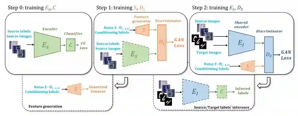 摘要:Recent works showed that Generative Adversarial Networks (GANs) can be successfully applied in unsupervised domain adaptation, where, given a labeled source dataset and an unlabeled target dataset, the goal is to train powerful classifiers for the target samples. In particular, it was shown that a GAN objective function can be used to learn target features indistinguishable from the source ones. In this work, we extend this framework by (i) forcing the learned feature extractor to be domain-invariant, and (ii) training it through data augmentation in the feature space, namely performing feature augmentation. While data augmentation in the image space is a well established technique in deep learning, feature augmentation has not yet received the same level of attention. We accomplish it by means of a feature generator trained by playing the GAN minimax game against source features. Results show that both enforcing domain-invariance and performing feature augmentation lead to superior or comparable performance to state-of-the-art results in several unsupervised domain adaptation benchmarks.