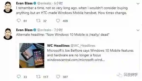 知名爆料达人@evleaks 也转发了该消息,并一句话点评:“现在Windows 10 Mobile是真的死了。”