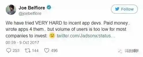 Joe Belfiore解释称,尽管微软花了很多钱请开发者为Windows 10 Mobile研发应用软件,甚至开发者不愿意参与时,亲自开发应用,但由于用户体量太小,很多公司都不愿意投资。