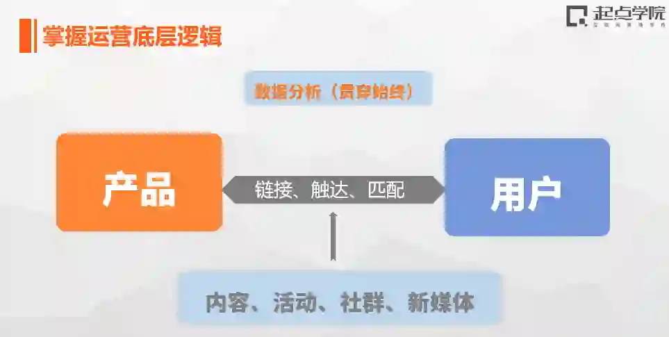 具体而言,无论你做的是什么行业、什么产品,作为运营,你要了解的一定是你的产品是什么?你的用户是谁?如何去搭建一座桥梁链接你的产品与用户,具体而言: