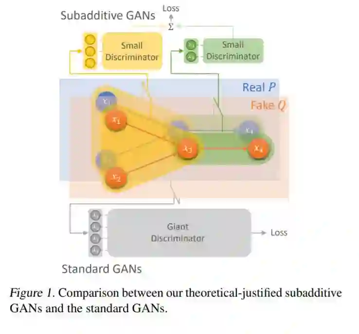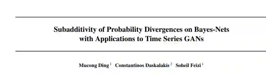 时间序列数据的GANs通常使用滑动窗口或自我注意力来捕获底层的时间依赖关系。虽然这些技术没有明确的理论依据,但它们成功地大幅减小了判别器的尺寸,加快了训练过程,提高了生成质量。本文给出了时间序列数据等由贝叶斯网络捕获的具有条件独立结构的高维分布的广义统计分析的理论基础和实践框架。我们证明了几个概率发散满足关于贝叶斯网络图邻域的次可加性性质,给出了两个贝叶斯网络之间距离的一个上界,这个上界是图上每个邻域上它们的边缘距离之和。这就引出了我们提出的次加性GAN框架,该框架在Bayes-net的邻近区域使用一组简单的判别器,而不是在整个网络上使用一个巨大的鉴别器,从而提供了显著的统计和计算优势。我们证明了包括Jensen-Shannon, Total Variation, 和Wasserstein在内的几个概率距离具有次加性或广义次加性。此外,我们还证明了积分概率矩阵(IPMs)在某些温和条件下也具有次可加性。此外,我们证明了几乎所有的f-发散都满足局部次加性,当分布相对接近时,局部次加性保持不变。我们在合成数据集和真实数据集上的实验验证了所提出的理论和次加性GANs的优点。