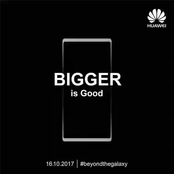 首先是华为,在 Note 8 正式发布之前就发起了#beyondthegalaxy(超越银河系)的话题,并发布了两张主题分别为“Bigger is Good”、“Smarter is Better”的海报,暗示 Mate 10 比 Note 8 更大更智能。并宣布 Mate 10 将在 10 月 16 日正式发布。