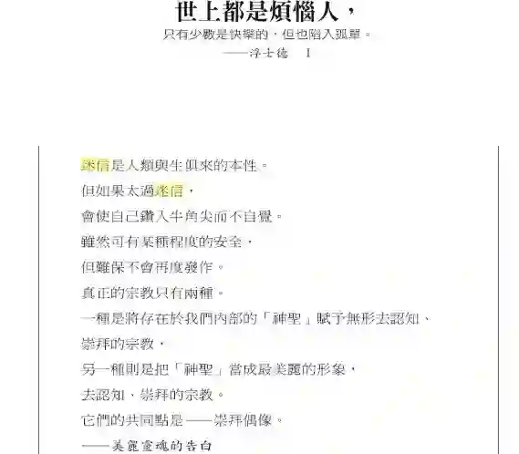 迷信是生活的诗歌。它是人与生俱来的本性。当我们以为它已经被彻底扫除了的时候,它就躲藏在最奇怪的角落和缝隙里,突然同时出现。