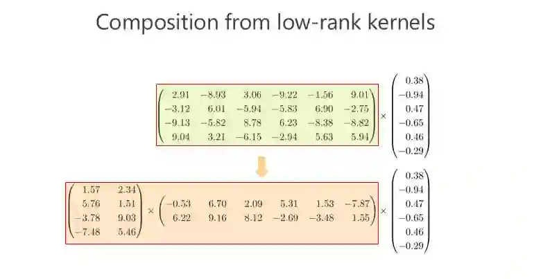 我们来看看这个矩阵能不能通过多个稀疏矩阵相乘来近似,这是我今天要讲的重点,我们的工作也是围绕这一点在往前走。在我们做这个方向之前,大家并没有意识到一个矩阵可以变成两个稀疏矩阵相乘甚至多个稀疏矩阵相乘,来达到模型小跟计算量小的目标。