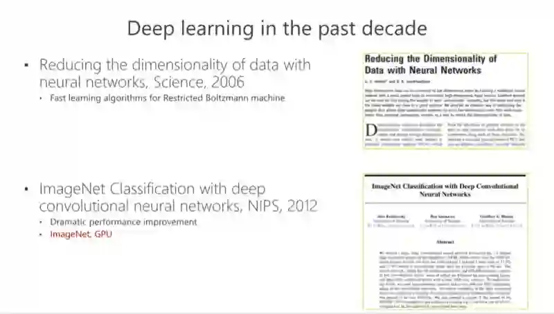 2006年《Science》上的一篇文章——Reducing the Dimensionality of Data with Neural Networks,是近十多年来促进深度学习发展非常重要的一篇文章。当时这篇文章出来的时候,很多机器学习领域的人都在关注这个工作,但是它在计算机视觉领域里并没有取得非常好的效果,所以并没有引起计算机视觉领域的人的关注。