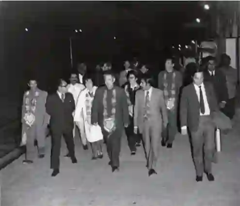 第三天上午,巴基斯坦总统叶海亚,总理布托在拉瓦尔品第官邸亲切地接见了中国科学家代表团并合影留念。尔后参观了北部城市白沙瓦,那里山峦重叠形势险峻,与阿富汗接壤,是军家必争的缓冲地带。该市的白沙瓦大学颇负盛名,该校校长亲自陪同我们巡视了全校。