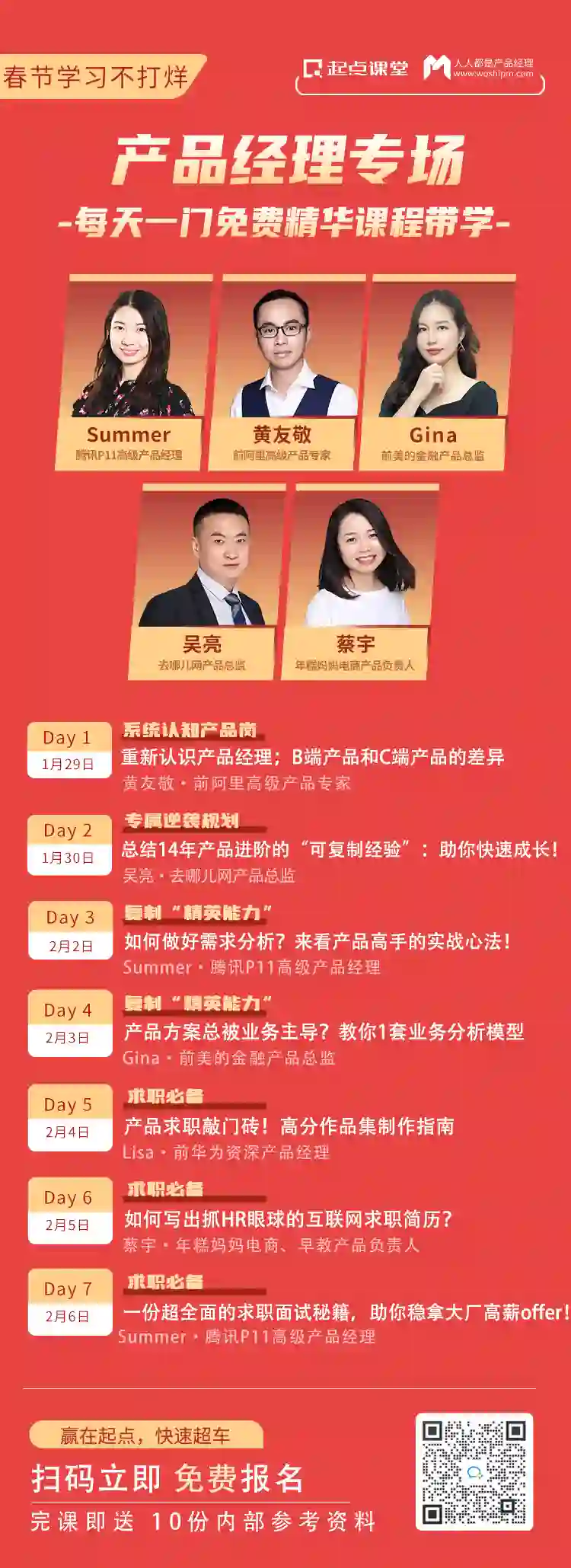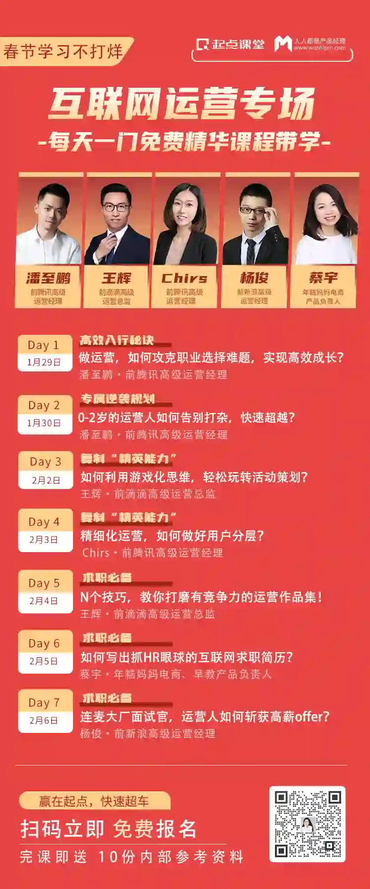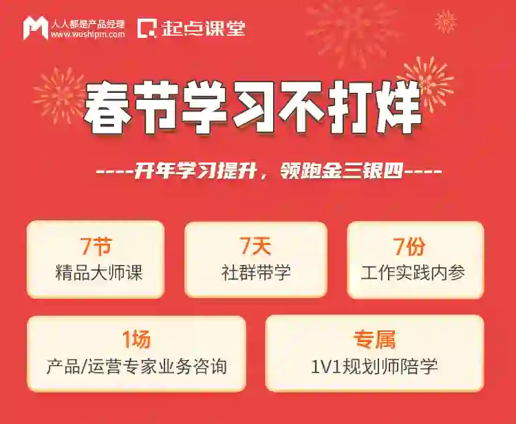 人人都是产品经理旗下平台起点课堂,联合多位一线大厂导师,开展了一项七天回馈活动——“春节学习不打烊”。