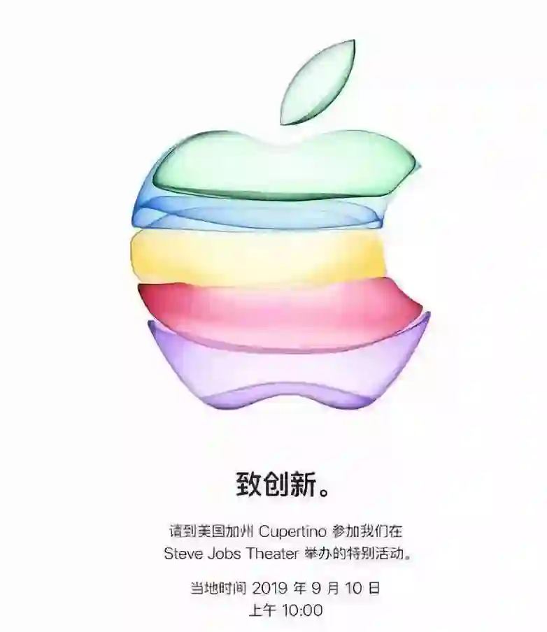 本次邀请函的主题是致创新,邀请函是一个彩虹色苹果LOGO,根据此前曝光消息,今年苹果公司可能会发布一系列新产品,包括新iPhone、MacBook Pro和Apple Watch等。