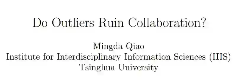不久之前,ICML 2018 的接收论文列表放出,本文为你编译了清华特奖得主、交叉信息院 2014 级本科生乔明达一人署名的论文《Do Outliers Ruin Collaboration?》。