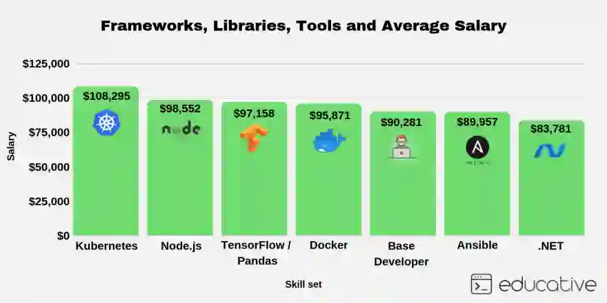 本文将谈一些最受欢迎的技术,学习这些技术会对你的薪水产生什么影响。我知道在职业发展初期,薪水并不一定是最重要的因素,但它是你付出的回报,并且反映出雇主对特定技能的重视/认可程度。通过本文,你会了解一些技术的发展趋势,对今后的职业生涯有所帮助。