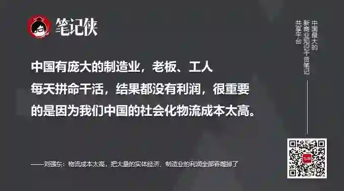 大家知道中国有庞大的制造业,老板很辛苦,工人也非常辛苦,大家每天拼命地干活,结果都没有利润,很重要的是因为我们中国的社会化物流成本太高,把大量的实体经济、制造业的利润全部吞噬掉了。