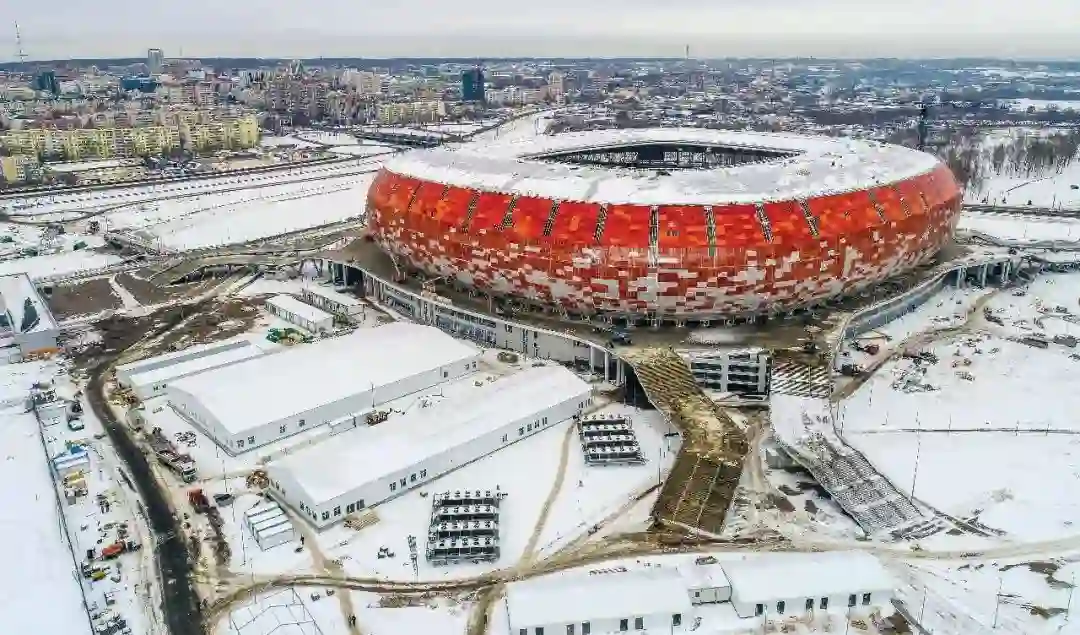 斯巴达克体育场同样位于莫斯科,将会承办本届世界杯初期的 5 场比赛,可容纳观众 45,360 人。作为莫斯科斯巴达俱乐部的主场球馆,斯巴达克体育场的建筑规划历经数次更改,建筑时间相当漫长。这座场馆的外观让人印象深刻,数百颗红、白色的菱形造成了莫斯科斯巴达的俱乐部徽章,不过与拜仁慕尼黑的安联体育场相仿,如果其他球队在这里踢球,菱形的颜色可以改变。