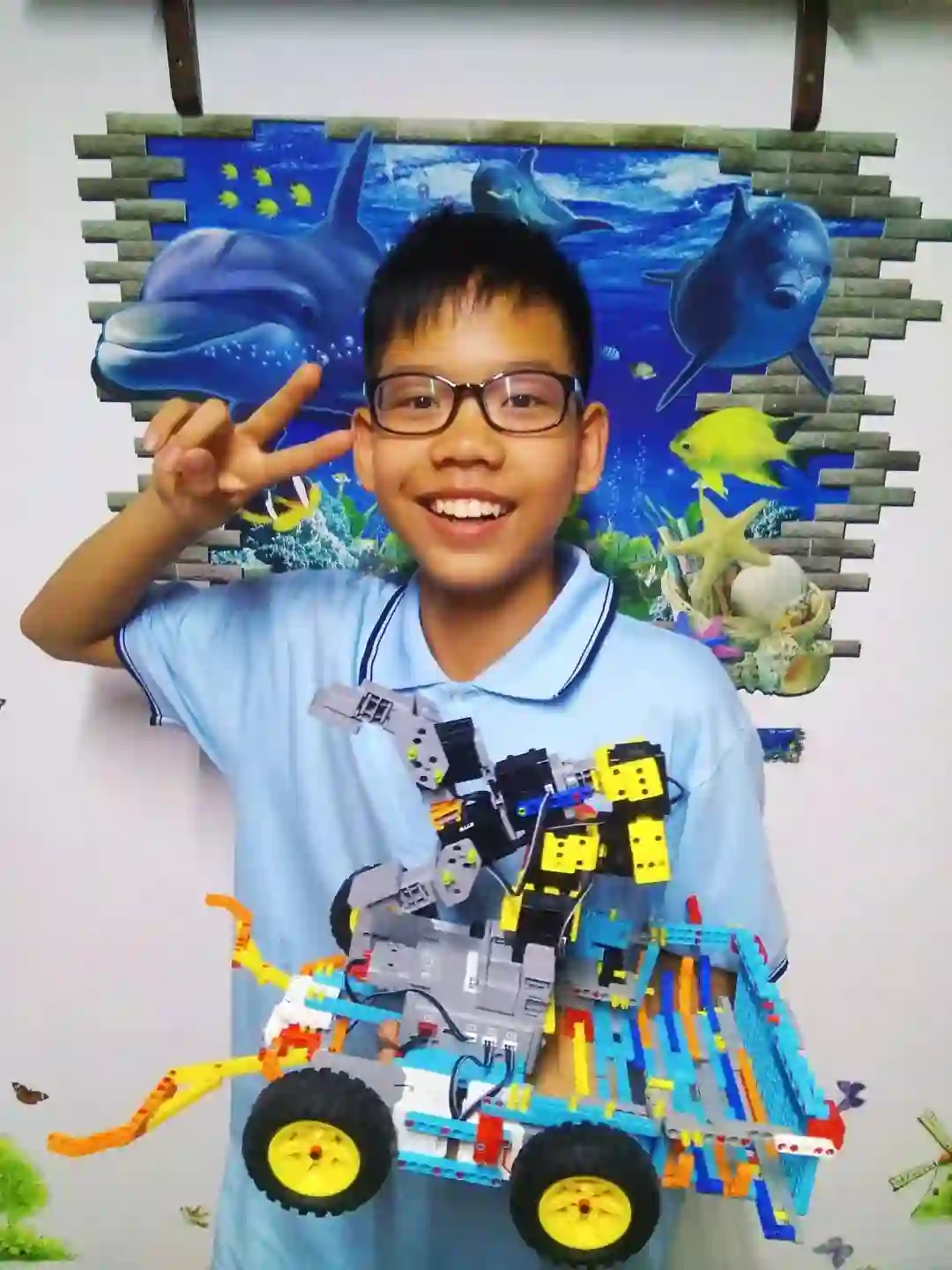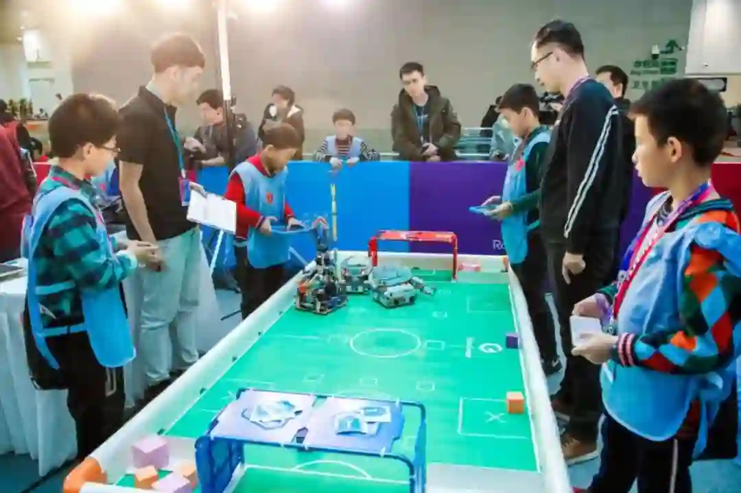 正当我在场馆中漫步时,看到旁边有记者采访参赛选手,我凑近听了听。这位来自“猴赛雷”战队的13岁男孩凌深杰和他的小伙伴是Robo Genius全球青少年机器人挑战赛深圳站的冠军,这次总决赛获得了初中组第六名的好成绩。因为喜欢机器人,他在一年前找到优必选科技机器人俱乐部开始系统的机器人学习。 凌深杰 凌深杰分享了他的备战经验:因为这个比赛是首届开展,他以前也没有参加过,对场地和道具还不熟悉。俱乐部的老师就用纸箱和凳子来模拟场地,帮助他训练。他觉得整个比赛中最难的部分就是通过编程设定机器人的动作,让它能夹取方块。凌深杰就这样进行了接近一个月的训练,最终取得了满意的成绩。而让凌深杰印象最深的是图形化编程了,用他自己的话讲:调试了很多次,基本把大部分训练时间放在了编程里。学习机器人一路走来,凌深杰收获满满:我学会了面对困难,应该冷静分析,把问题分解了,然后一步步去解决。其实,除了凌深杰以外,我这次还遇到了很多励志的小同学。山东省淄博市张店九中六年级二班的丁炫博,在今年国庆节期间和父母来到中国科技馆参观,无意中得知中科馆将组织举办机器人挑战赛,兴奋地报了名。之后的每个周末,他都在父母的陪同下,乘高铁来到北京,在中科馆接受赛前培训。北京石景山银河小学五年级一班的宁可萱是中国科技馆的常客,也是馆里招聘的小小志愿者,今年国庆节期间她一直参与“科学之夜”志愿者活动,深受中科馆大哥哥大姐姐的认可。报名参加机器人挑战赛后,她结识了丁炫博,两人组成搭档,一个在山东,一个在北京,两人只能天天电话和微信讨论比赛战术和竞技策略。 每一次比赛都是一次成长,每一次成长都是一场胜利。虽然他们未能最终夺冠,但经过一场场比赛的锤炼,我相信他们比很多同龄人更早的感受到了机器人的魅力,思维也更加敏捷开阔。虽然我只是一个小小的足球、虽然我被踢了,但我还是想说:For you, a thousand times over.以赛带学,为中国的明天储备AI人才
