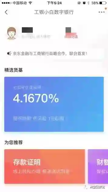 根据雷锋网AI金融评论了解,目前工银小白已在京东金融App上线,中国工商银行手机银行则不久后更新,上线该功能。据观察,工银小白设置在理财栏目。用户只需要上传身份证正反面,然后绑定银行卡账户,就可以成功开通一个工银小白账户,属于工商银行Ⅱ类账户。