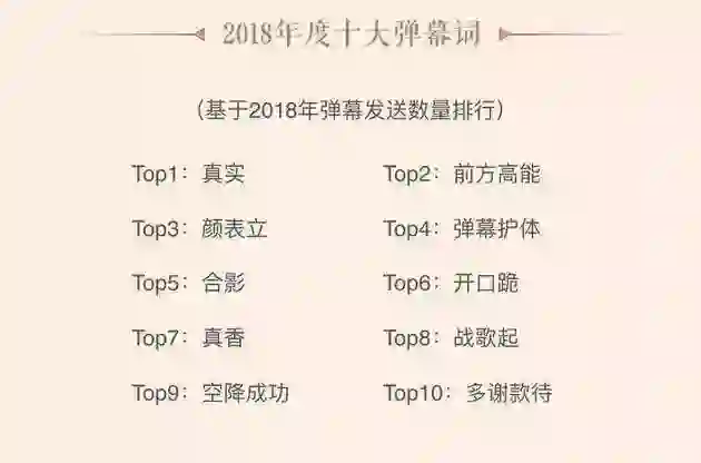 哔哩哔哩(B 站)昨日联合中国社会科学院共同发布了 2018 年度十大弹幕热词。依据 2018 年弹幕发送数量进行排序,「真实」称年度弹幕之首,「前方高等」、「颜表立」跻身前三。