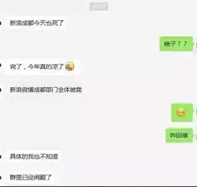 昨日有爆料称,新浪微博成都部门全体被裁员。在「脉脉」上,有人称被全体裁员的是研发部门。而在评论中,有认证的新浪微博员工确认此事,称一直播团队有 3 分之 1 员工被裁,微博北京总部明年初会被波及。