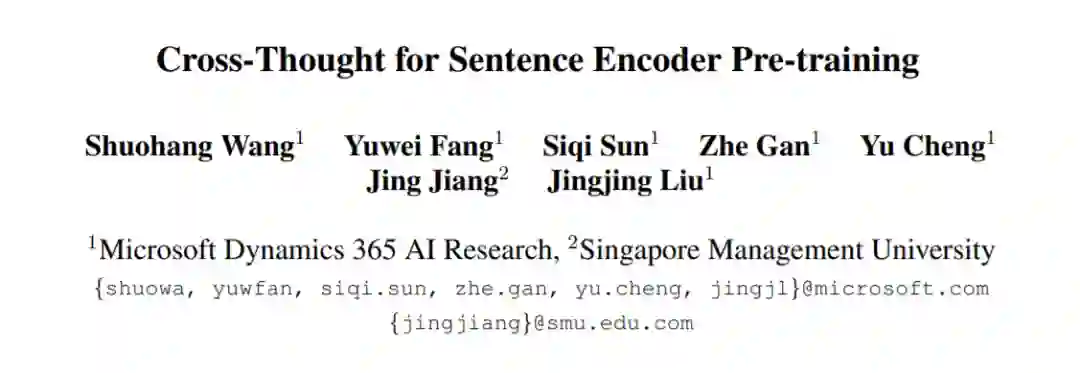 本文提出了Cross-Thought,一种创新的训练句子表示的自监督任务,使得模型利用上下文句子的表示用来恢复当前句子中被mask的token。实验结果显示Cross-Thought在短序列上预训练的有效性,进一步在下游任务上finetune的结果显示超出了许多baseline。
