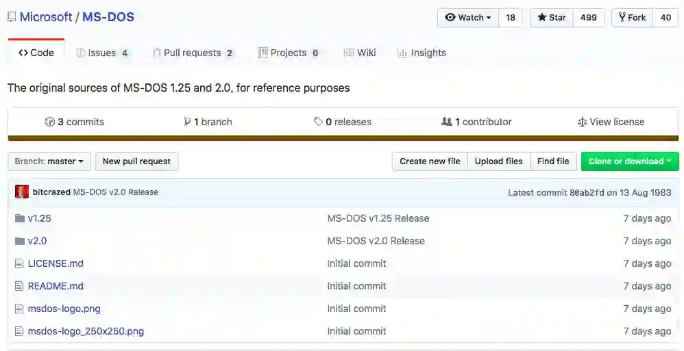可能是「计算机历史博物馆」对开发者不友好的原因,就在七天前,微软官方把 MS-DOS MS-DOS v1.25 & v2.0 的源代码在 GitHub 上公开,更方便获取了。