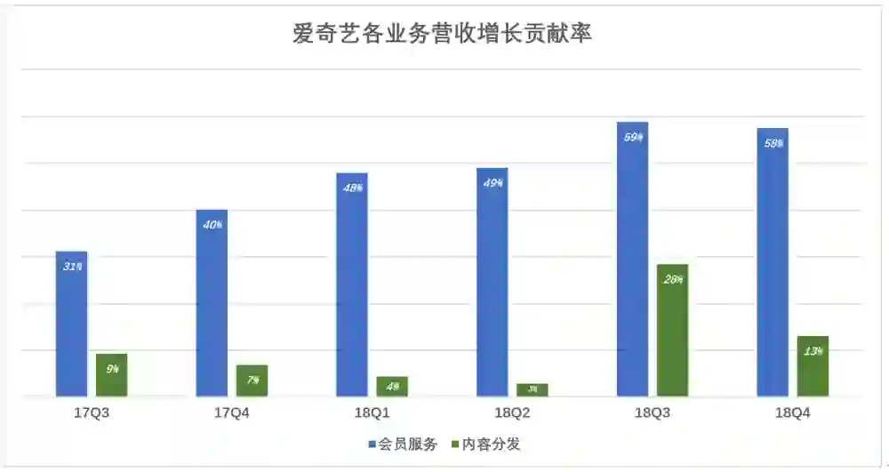改变战略之后,会员服务和内容分发成为推动营收增长的两个引擎。前者对营收增长的贡献率接近60%,后者亦达13%~28%。