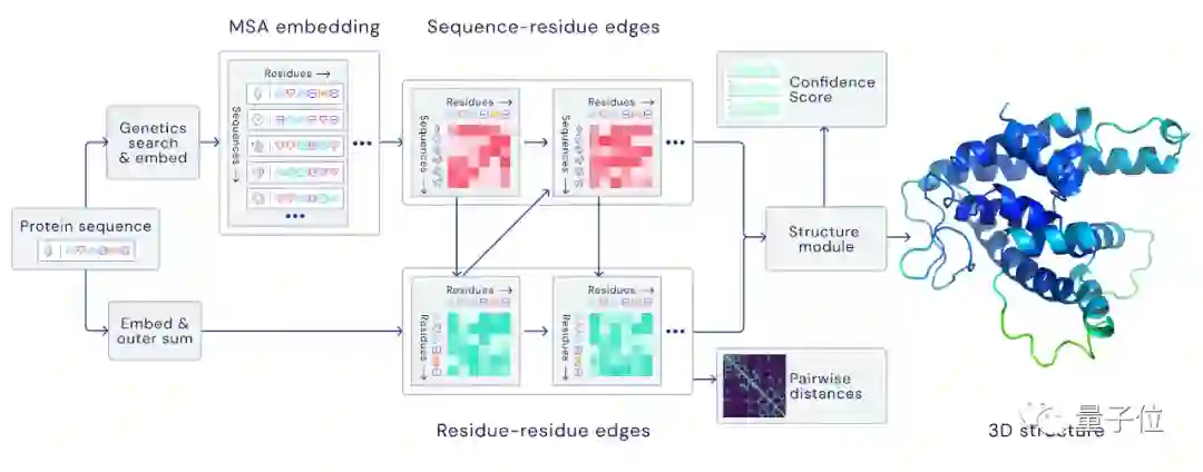 在这个推理过程,还会用到生物学中已知的信息进行完善,如:进化中的同源序列,多序列比对(MSA)和氨基酸残基对等。