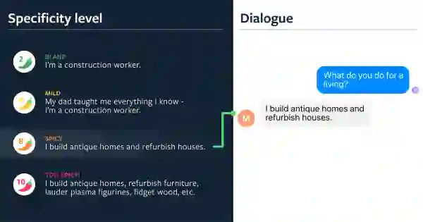 很多会话机器人容易产生“没用”的通用回复,例如:我没听懂您说的话,哈哈,哦哦等等。为改善用户体验,有很多研究人员开展会话机器人回复具体程度方面的研究,比如《What makes a good conversation? How controllable attributes affect human judgments》。下面给出一个实例: