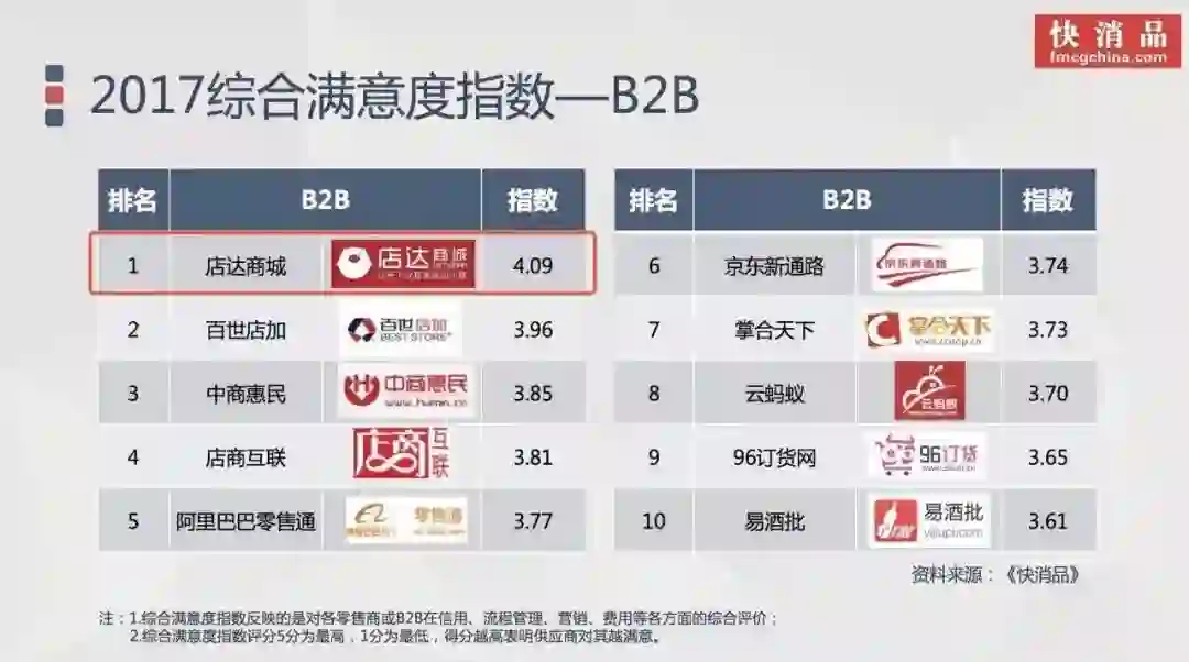 *店达在2017供应商满意度专题调研B2B类的综合满意度