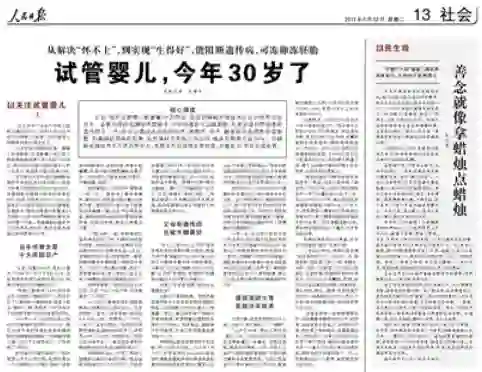 本文转载自“人民日报”,原标题:试管婴儿,今年30岁了。