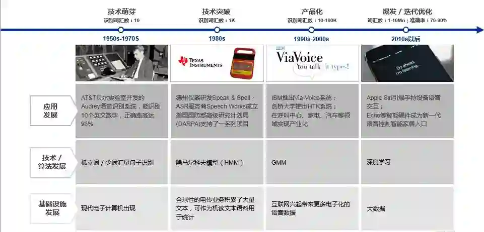 突破的产生始于深度学习的出现。随着深度神经网络(DNN)被应用到语音的声学建模中,人们陆续在音素识别任务和大词汇量连续语音识别任务上取得突破。