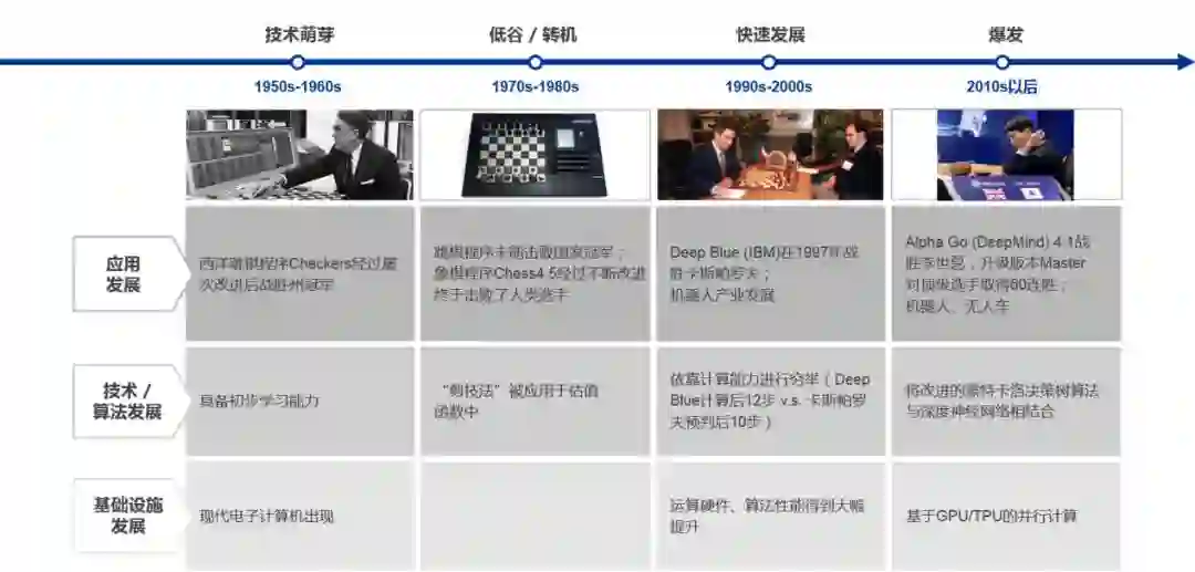 到了2016年,硬件层面出现了基于GPU、TPU的并行计算,算法层面出现了蒙特卡洛决策树与深度神经网络的结合。