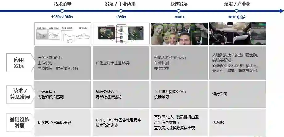 到了2010年以后,借助于深度学习的力量,计算机视觉技术得到了爆发增长和产业化。通过深度神经网络,各类视觉相关任务的识别精度都得到了大幅提升。