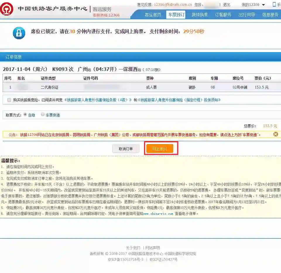 4.从今天起,能在12306上用微信支付买火车票了