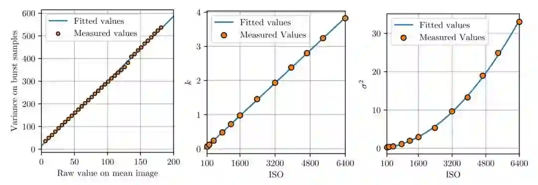 因此只需要测出x的均值其方差的线性关系图,即可依据其斜率k和截距sigma。实际上这里的k是一个关于g的常量,g乘以100即为ISO,也可以直接算出k。