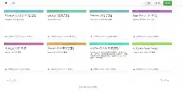 ps:有一个超赞的网站,提供很多文档的中文翻译,有Python、pandas、numpy、NLTk、Django等等,值得收藏。