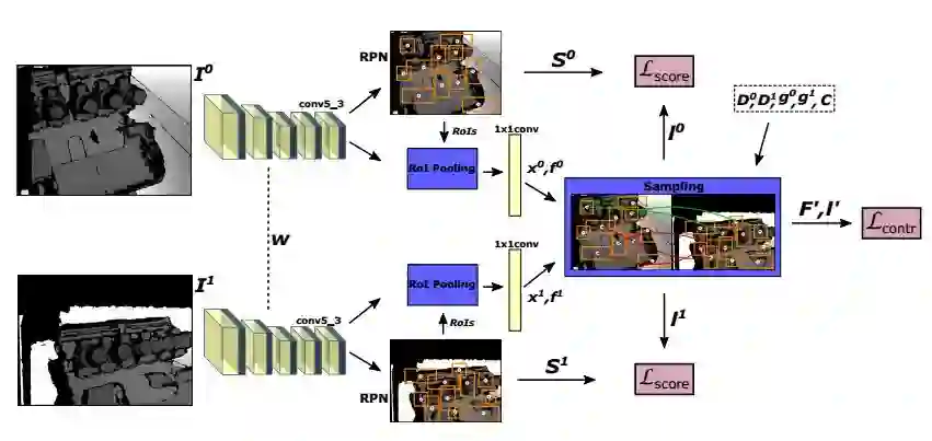 摘要:Finding correspondences between images or 3D scans is at the heart of many computer vision and image retrieval applications and is often enabled by matching local keypoint descriptors. Various learning approaches have been applied in the past to different stages of the matching pipeline, considering detector, descriptor, or metric learning objectives. These objectives were typically addressed separately and most previous work has focused on image data. This paper proposes an end-to-end learning framework for keypoint detection and its representation (descriptor) for 3D depth maps or 3D scans, where the two can be jointly optimized towards task-specific objectives without a need for separate annotations. We employ a Siamese architecture augmented by a sampling layer and a novel score loss function which in turn affects the selection of region proposals. The positive and negative examples are obtained automatically by sampling corresponding region proposals based on their consistency with known 3D pose labels. Matching experiments with depth data on multiple benchmark datasets demonstrate the efficacy of the proposed approach, showing significant improvements over state-of-the-art methods.