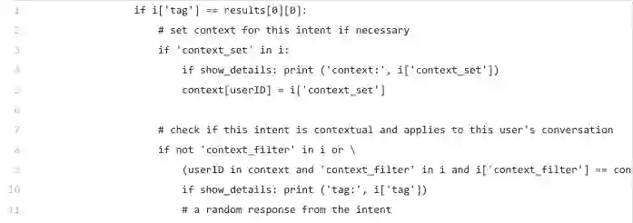 我们将构建一个简单的状态机来处理响应,使用我们(从上一步)的意图模型作为分类器。这就是聊天机器人的工作原理。