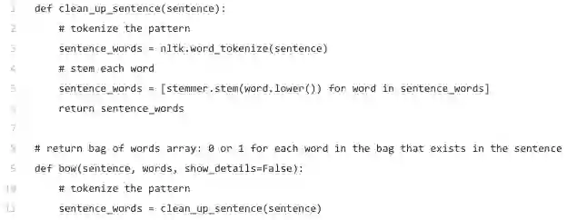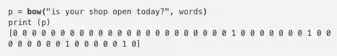在处理意图之前,我们要想办法把用户输入生成词袋。这个技巧与我们以前使用过的训练文本相同。