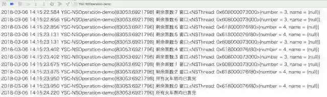 NSLog(@"%@", [NSString stringWithFormat:@"剩余票数:%d 窗口:%@", self.ticketSurplusCount, [NSThread currentThread]]);