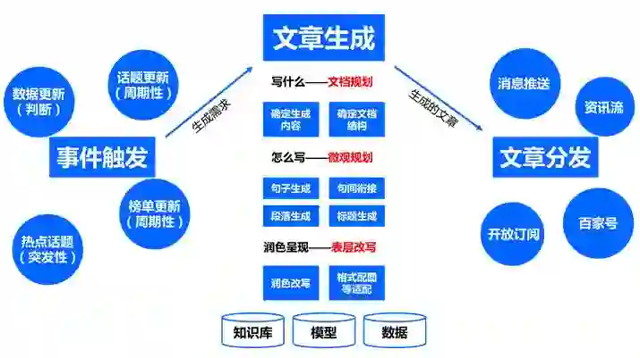 一类是基于结构化数据、知识库或优质资源直接生成的文章。速报和大部分知识类文章是基于这类技术方案。这类文章因为直接从数据通过分析聚合或知识推理生成原始稿件,因此可以说是原创。