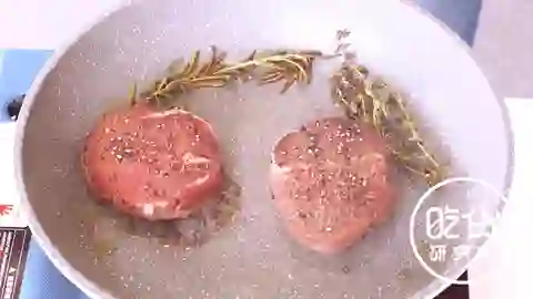2、平底锅要充分预热,烧的很烫再放牛排;