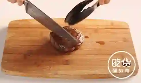 坦率地说,如果牛排厚度小于1.5cm,想要到得到“肉汁”和“焦香”并存的牛排其实难度比较大,而厚切牛排煎起来才有足够的(容错)时间,能让表面彻底焦化的同时,内部也不至于因为升温过快而过度流失汁水。我们经过不断的尝试和调整,最终把菲力的牛排的厚度调整为3cm。这样只要每面各煎几分钟,然后从锅里取出静置5分钟,撒点盐就可以吃了!方便又美味!