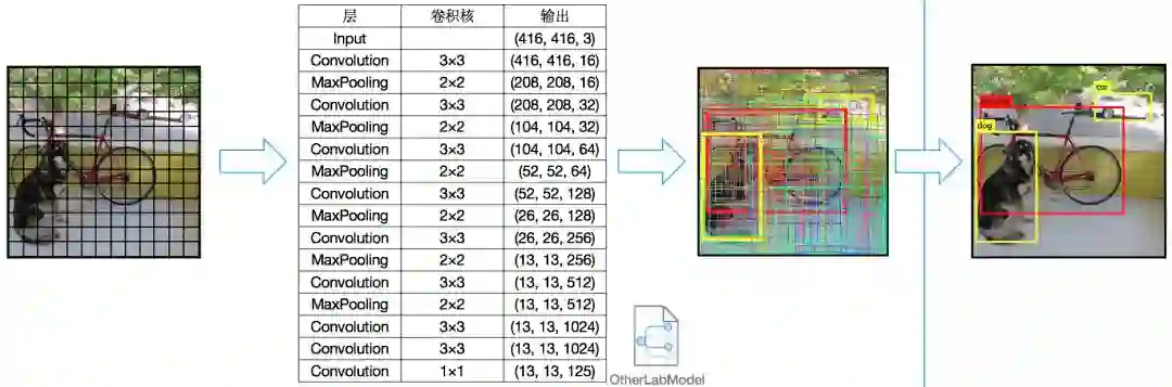 在一副图片中标定场景中出现的所有车辆的位置,其实就是SSD问题(Single Shot MultiBox Detector),进一步调研可以了解到近几年基于CNN的SSD算法层出不穷,各种论文资料也很多。其中要数康奈尔大学的YOLO算法尤为出名。更重要的是原作者提供了一个他训练好的模型,这个模型在GitHub上就可以下载,没错我们结合算法其目标检测中的模型算法就是使用的这个→_→ 。
