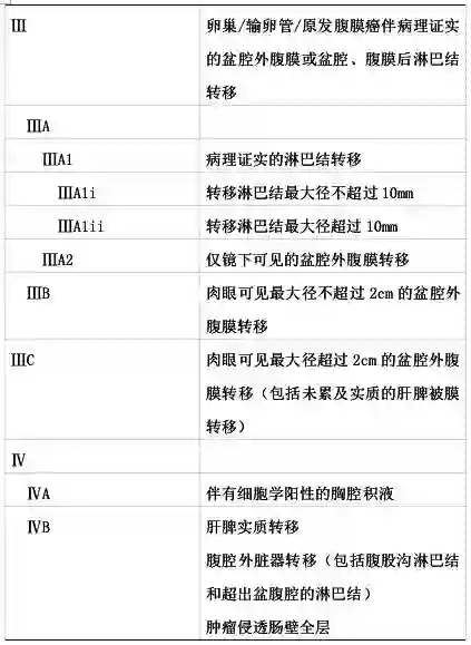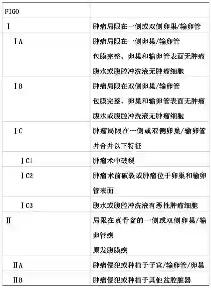 表3 卵巢上皮癌、输卵管癌、腹膜癌FIGO分期