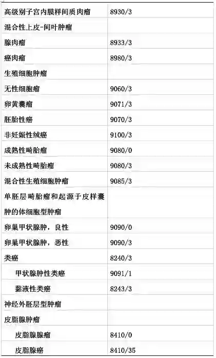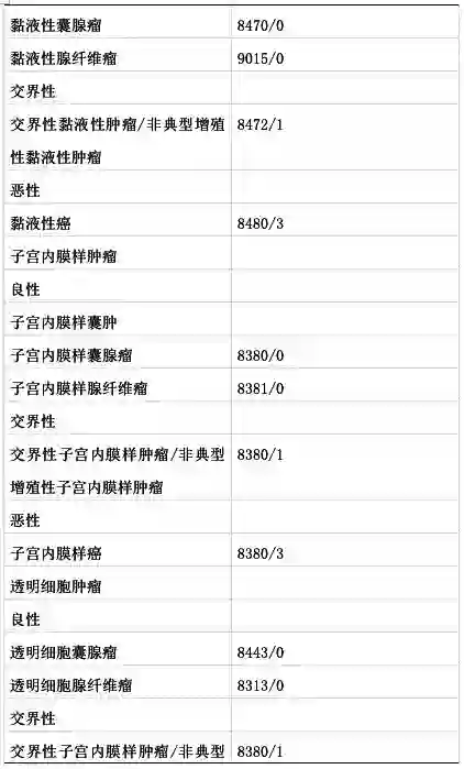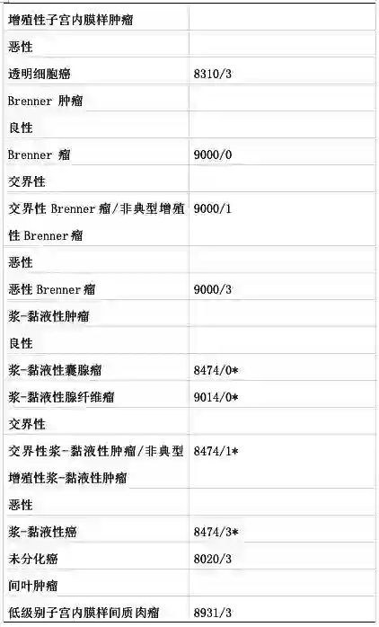 表1 卵巢上皮癌/生殖细胞肿瘤的组织学类型