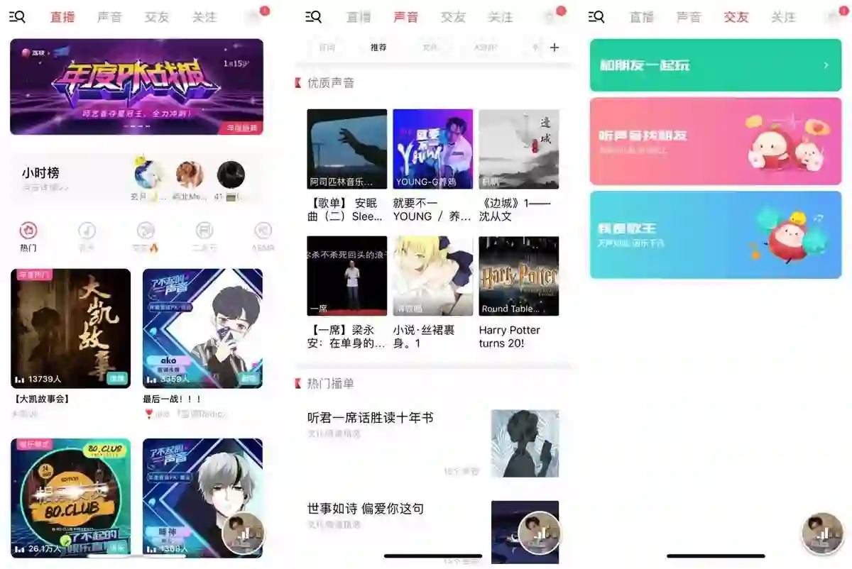 因为前者是PGC内容,线上有声图书馆;后者则是UGC社区,年轻人玩声音的泛娱乐社区。如果拿视频平台做比,前者像爱奇艺,后者像Blibli,前者重在内容输出,后者重在用户聚合。