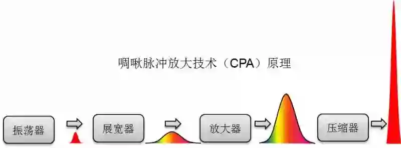 1985年,随着啁啾脉冲放大技术的出现,激光聚焦功率密度实现飞跃式的提升。 从CPA的基本原理图(图2)可见,整个系统大致分为振荡器、展宽器、放大器和压缩器。其关键是: