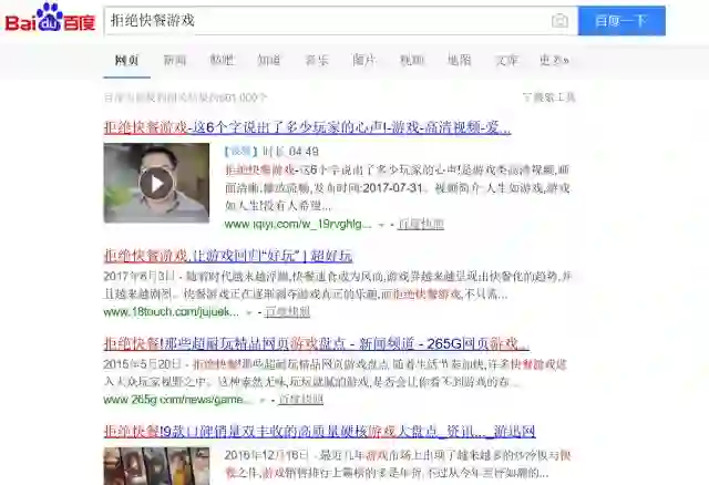 通过在百度进行简单的检索比较,我们可以发现,对快餐游戏的拒绝是更加直接、不留情面的。